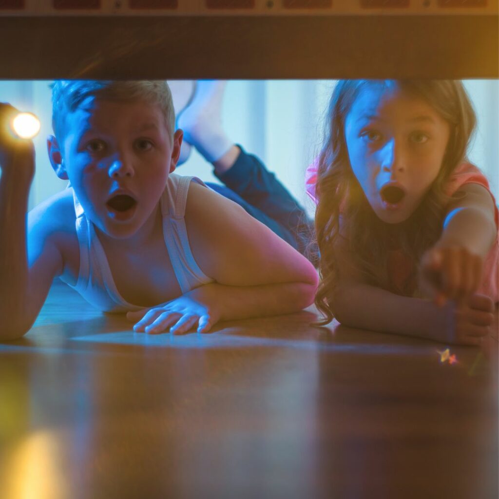 Mit einfachen Taschenlampen und buntem Papier kann jeder seine Lieblingsfarbe in den Raum projizieren. Wenn ihr dann noch die Taschenlampen ein- und ausschaltet, bekommt ihr den Disco-Effekt. Und Musik, die allen gefällt, darf natürlich auch nicht fehlen. So kann man schon mal ein, zwei spannende Stunden mit den Kids verbringen.